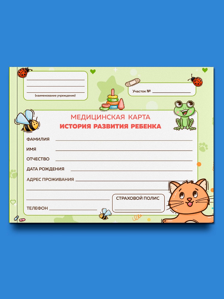 Медицинская карта необходима с рождения каждому малышу. Наша карта составлена по стандартной форме № 112/у История развития ребенка и содержит разделы для сведений о новорожденном, профилактических осмотрах, диагнозах, вакцинации и многом другом, а также большое количество дополнительных страниц.