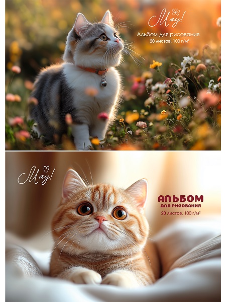 Альбом для рисования 20л МИЛЫЕ КОТИКИ — 1 обл-офс,бл-офс Проф-пресс 20-7202