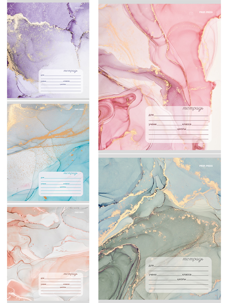 Тетрадь 18 клет МРАМОРНЫЙ ДИЗАЙН (Т18-5955) цвет.мелов.обл.,5 дизайнов в спайке