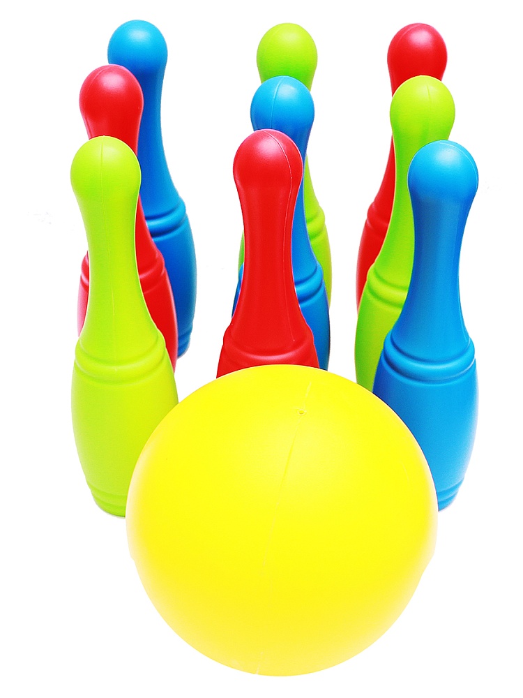 Игрушка НАБОР КЕГЛЕЙ 9 шт. на держателе + 1 большой мяч (сетка) (Арт.И-8264