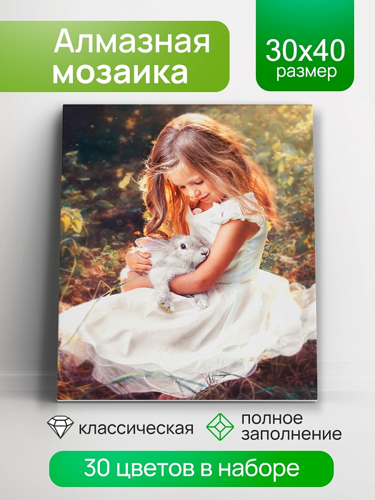Алмазная мозаика (клас.) 30х40 см, с подр., с полн. заполн. (30цв.) Девочка и кролик (арт. АЛМ-0065)