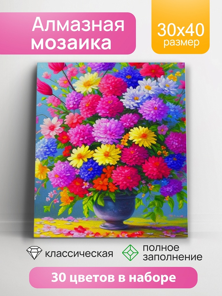 Алмазная мозаика (клас.) 30х40 см, с подр., с полн. заполн.(24 цв.) Яркий летний букет (Арт. НД-8588)