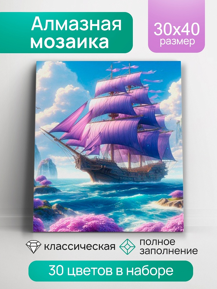 Алмазная мозаика квадратная 30х40 (класс.) (30цв.) Фиолетовые паруса (арт. НД-8932)