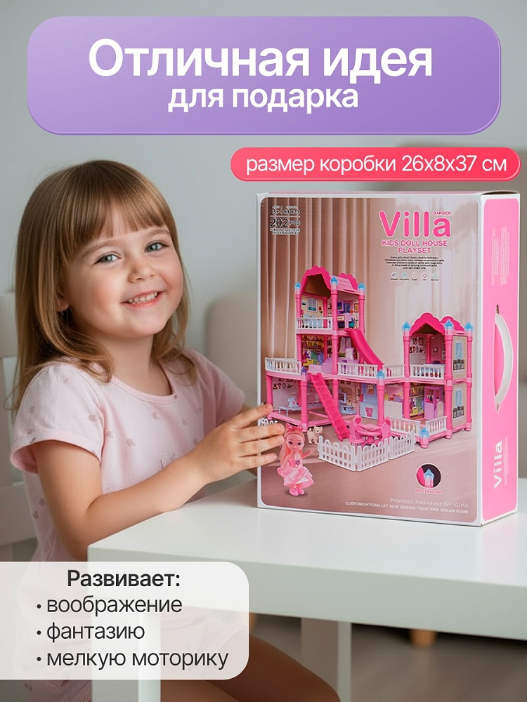 Игрушка Домик для кукол «Вилла» (с куклой и собакой в наборе, 202 детали, в кор.)(Арт.Y27980003)