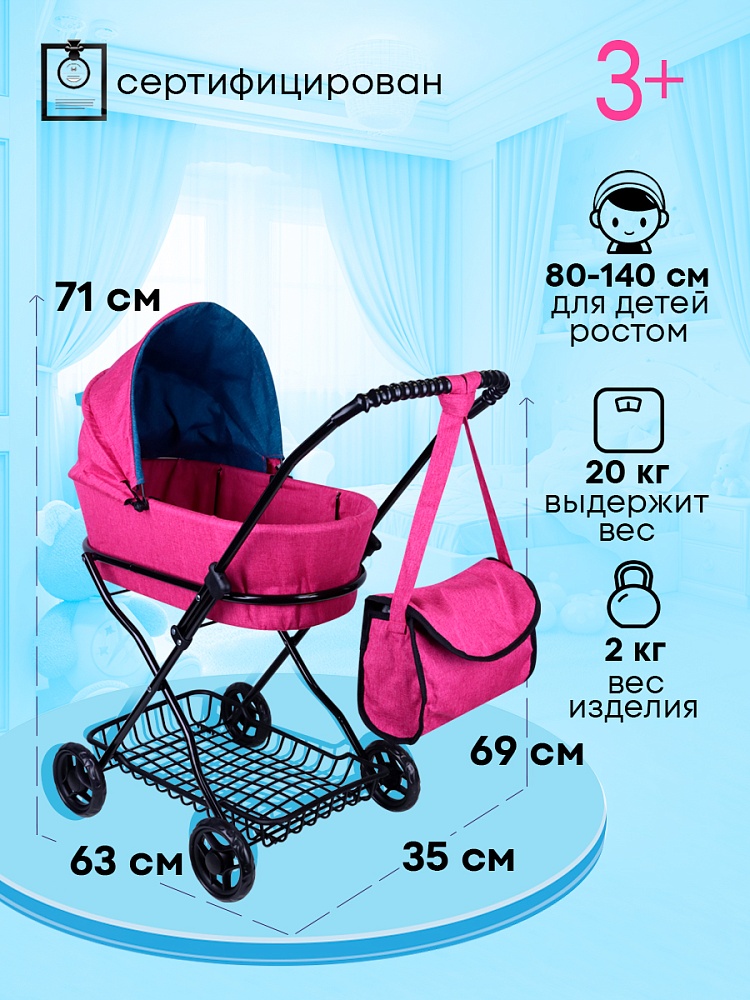 Игрушка Коляска для кукол (63х35х71см) в наборе с сумкой, в пакете (Арт. 9325-F )