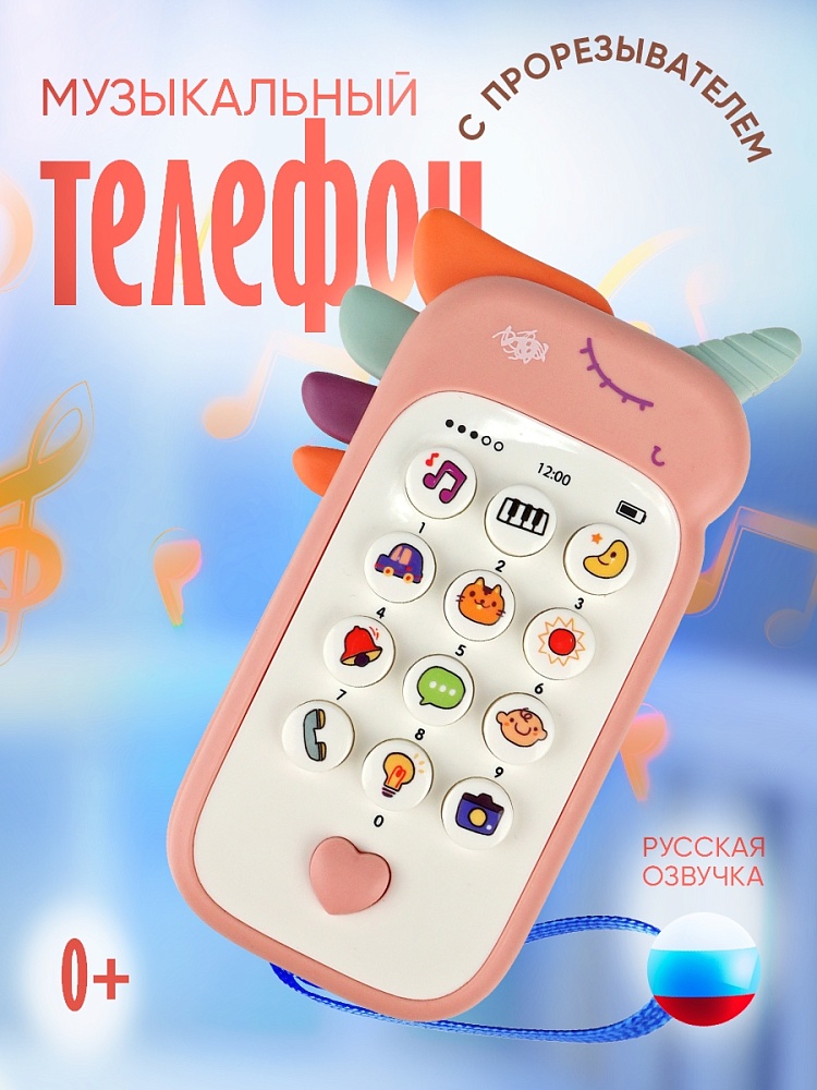Игрушка Музыкальный телефон с прорезыв.»Единорог»(русс. озвуч. и кор.,бат. 2*ААА не в компл, розовый)(Арт.FCJ1064718)