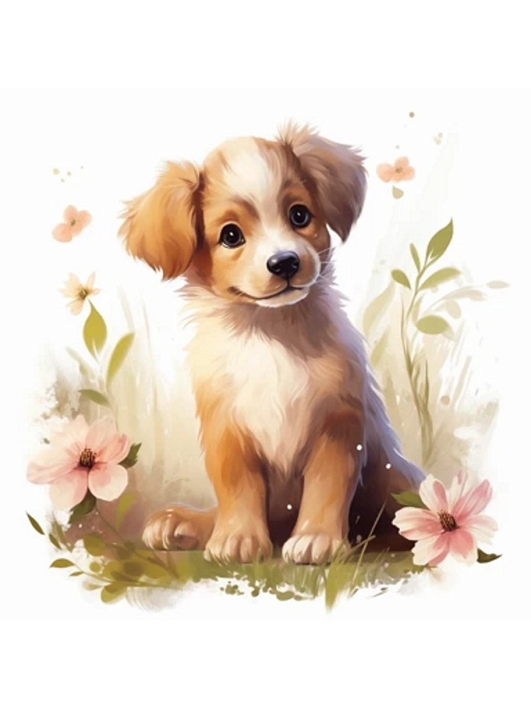 Холст с красками 20х20 по номер. в кор «Малыши-животные» (16цв) Пёсик в цветах (арт. Х-0640)