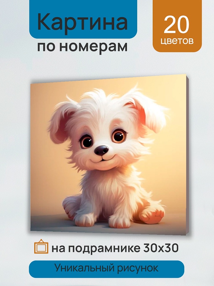 Холст с красками 30х30 по номер. в кор «Малыши-животные» (20цв) Белоснежный щенок (арт. Х-6319)