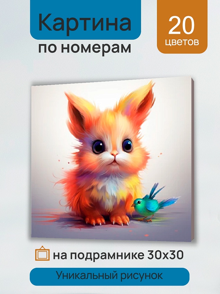 Холст с красками 30х30 по номер. в кор «Малыши-животные» (20цв) Крольчонок и птичка (арт. Х-6314)