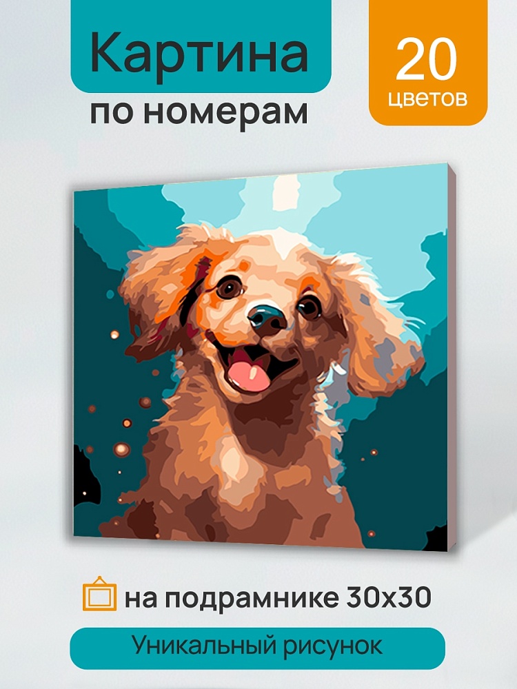 Холст с красками 30х30 по номер. в кор «Малыши» (20цв) Друг человека (арт. Х-6330)
