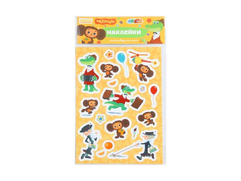 Наклейки бумажные многоразовые 12*18см Чебурашка Мульти арт 3110
