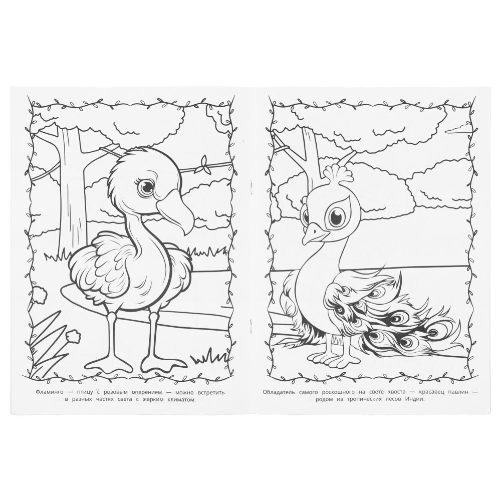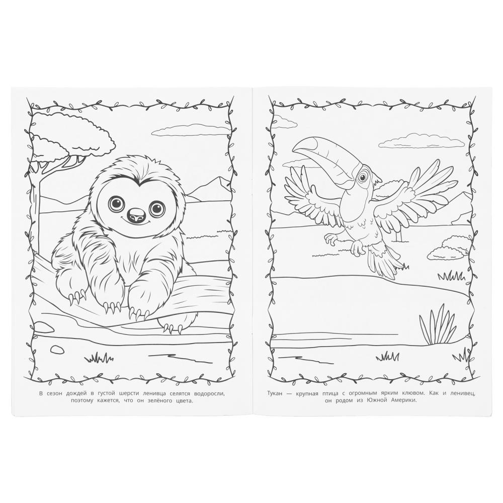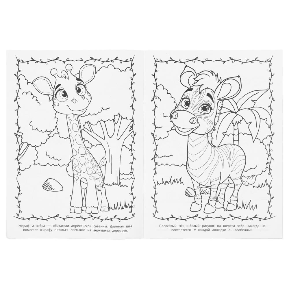 Эта увлекательная раскраска про животный мир жарких стран непременно понравится вашему ребёнку. В ней он найдёт интересные картинки с чёткими контурами и сюжетными текстами к ним. Данное издание станет отличным вариантом, чтобы взять его с собой в путешествие и скоротать время в дороге за раскрашиванием.