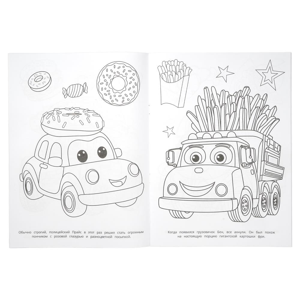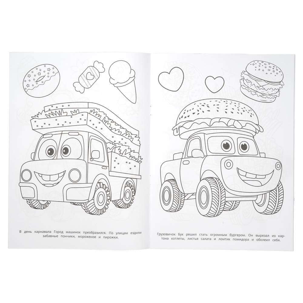 Эта увлекательная раскраска с забавными героями-машинками в виде еды непременно понравится вашему ребёнку. В ней он найдёт интересные картинки с чёткими контурами и сюжетными текстами к ним. Данное издание станет отличным вариантом, чтобы взять его с собой в путешествие и скоротать время в дороге за раскрашиванием.