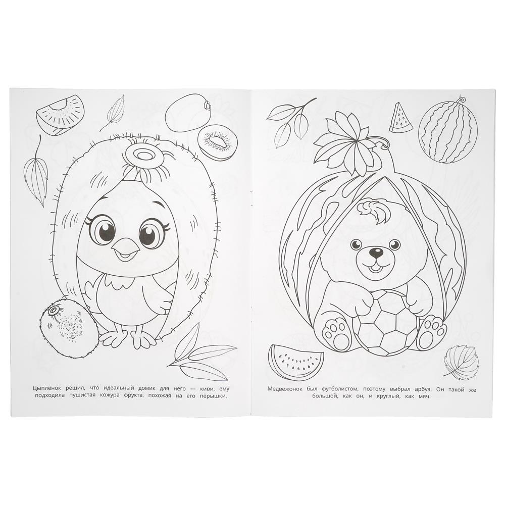 Эта увлекательная раскраска с забавными зверятами в фруктовых домиках непременно понравится вашему ребёнку. В ней он найдёт интересные картинки с чёткими контурами и сюжетными текстами к ним. Данное издание станет отличным вариантом, чтобы взять его с собой в путешествие и скоротать время в дороге за раскрашиванием.