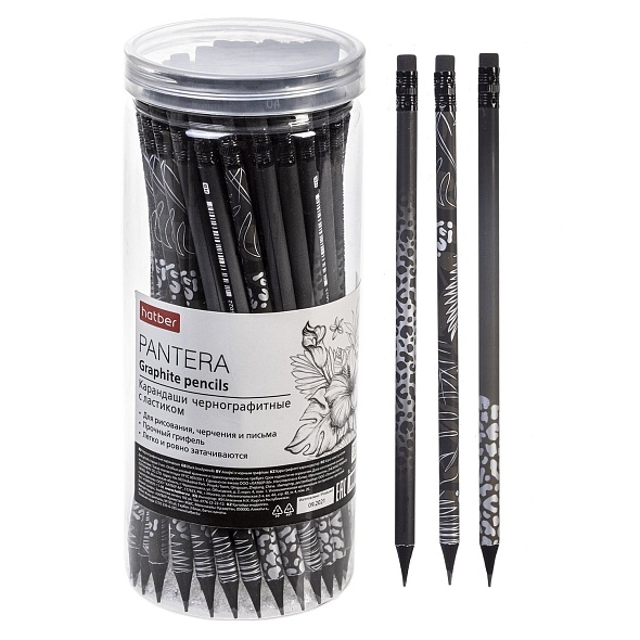 Карандаш ч/г с ластиком HB Hatber Pantera круглый корпус черн.дерево заточен. в пласт.тубе 072750
