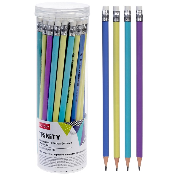 Карандаш ч/г с ластиком HB Hatber TRINITY трехгран.корпус пластиковый заточен. в пласт.тубе 089582