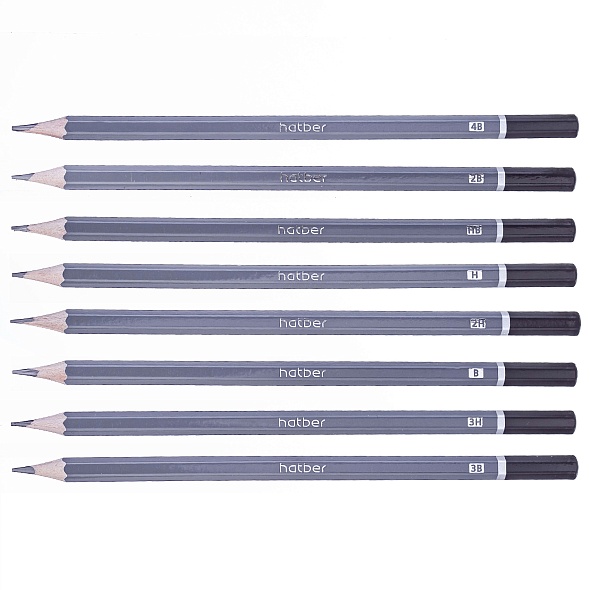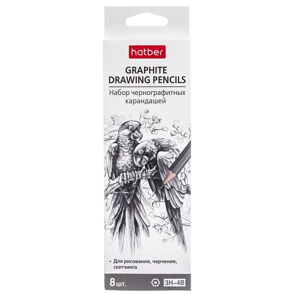 Карандаш ч/г Набор Hatber шестигран.корпус 8 шт. разной твердости (3H 2H H HB B 2B 3B 4B) заточен. в карт. короб. с европодвесом 071087