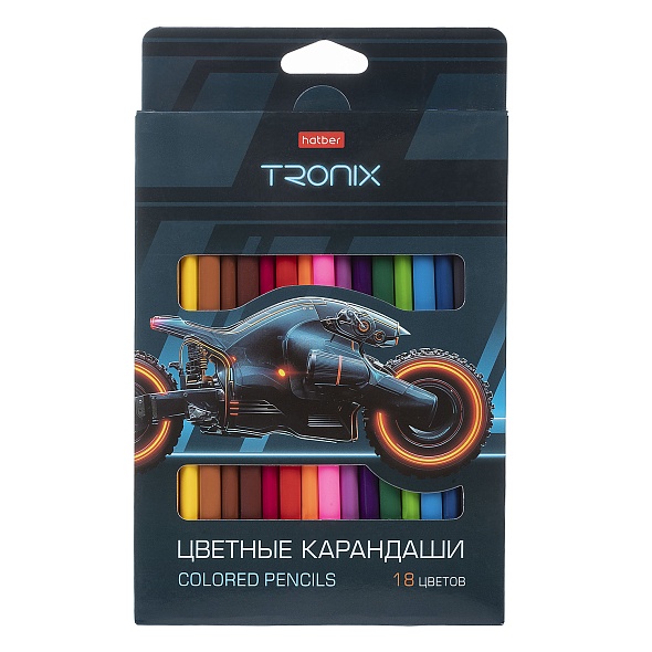 Карандаши 18 цв TRONIX- заточен. трехгран.корпус в карт. короб. с европод Hatber 093406