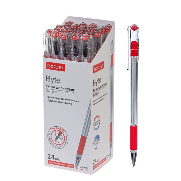 Ручка шар красн 0,7мм Hatber Byte чернила на масл.основе с резиновым грипом 091398