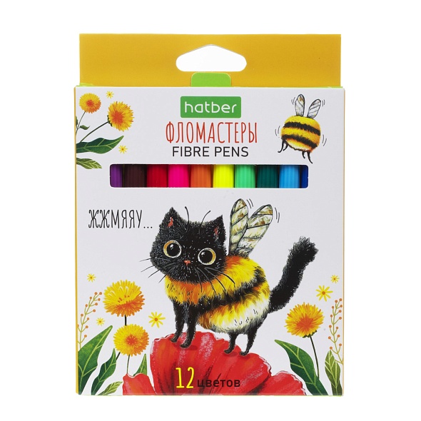 Фломастеры 12цв Hatber ЖЖ-МЯУ в карт. короб. с европодвесом 093494