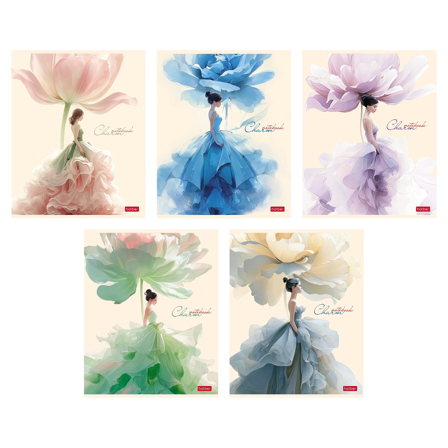 Тетрадь 48 клет CHARM ламинац.SOFT-TOUCH 5 диз.в блоке скругл.углы Hatber 5473