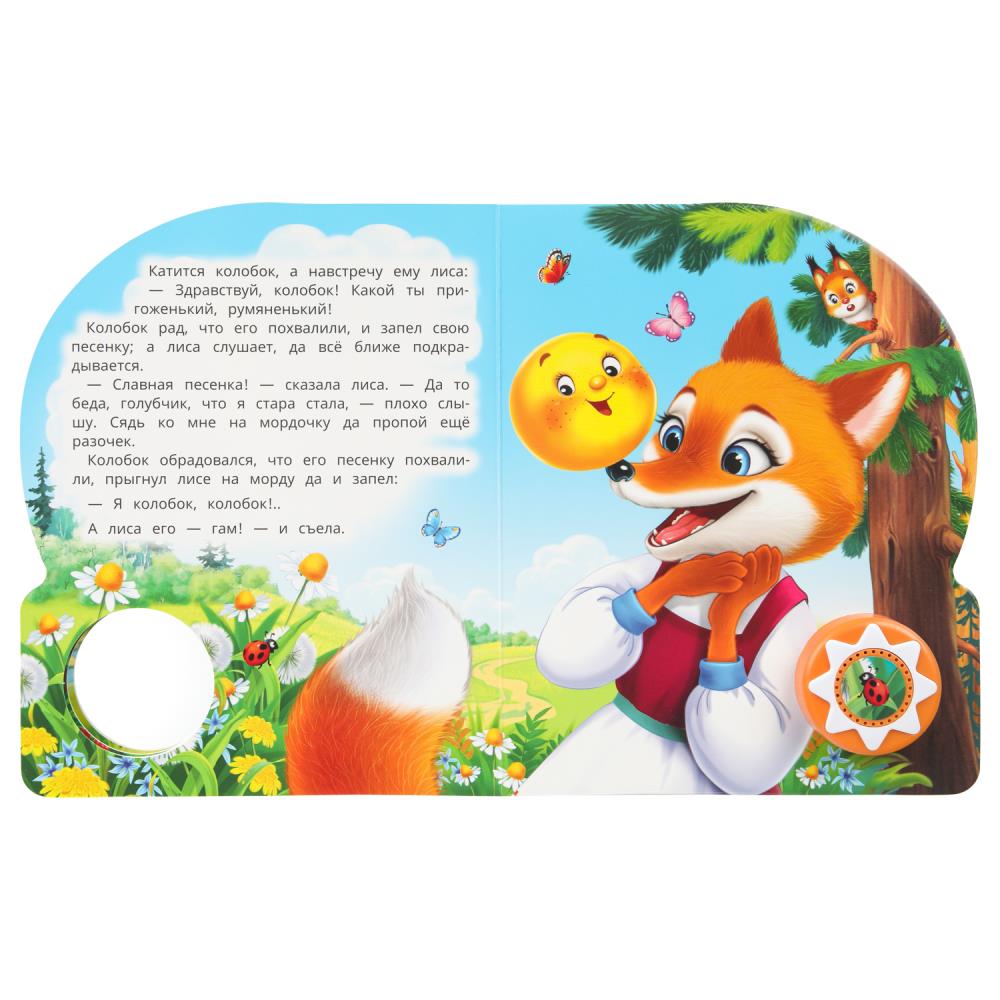 Ребёнок с удовольствием будет листать плотные страницы с яркими картинками, нажимать на кнопку с рисунком и слушать мелодичные песенки по мотивам сказки. Одно нажатие на кнопку – песенка включится, второе нажатие – выключится и т.д. Книжка сделана из плотного картона, поэтому родители могут не опасаться за её сохранность. Благодаря компактному формату книгу удобно брать с собой в дорогу.