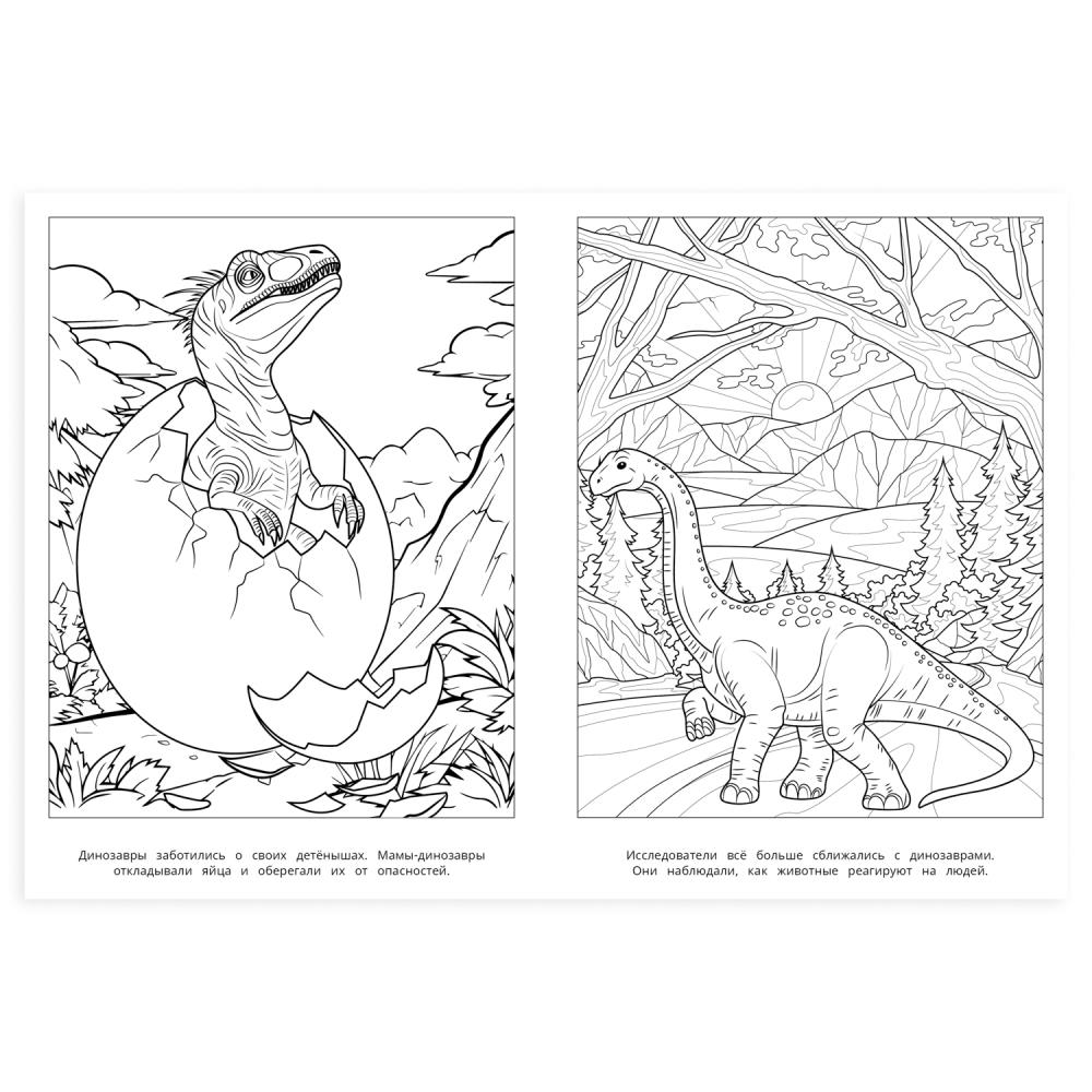 Эта увлекательная раскраска про захватывающие приключения и удивительных динозавров непременно понравится вашему ребёнку. В ней он найдёт интересные картинки с чёткими контурами и сюжетными текстами к ним. Благодаря удобному формату раскраску можно взять с собой в путешествие.