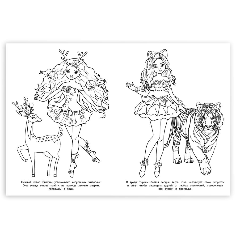 Эта увлекательная раскраска с очаровательными моделями с волшебной внешностью непременно понравится девочке. В ней она найдёт интересные картинки с чёткими контурами и сюжетными текстами к ним. Благодаря удобному формату раскраску можно взять с собой в путешествие.