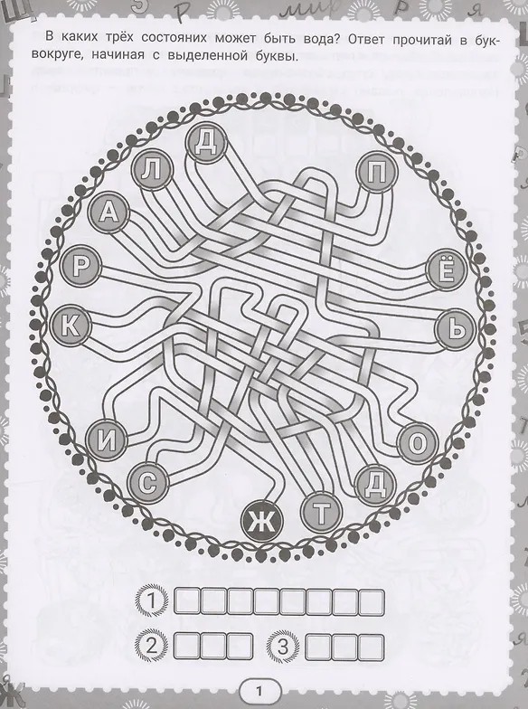 Приглашаем ребят окунуться в удивительный мир воды. Разгадывая загадки, ребусы и головоломки, ребята узнают о состояниях воды, её важности для жизни, вспомнят водные виды спорта, животных, героев сказок и мультфильмов, которые живут в воде, а также получат новые знания о морях и океанах и узнают, у какого водоёма бывают рукава. Книга направлена на интеллектуальное развитие ребёнка и способствует расширению знаний о природе и окружающем мире. Загадки для детей – это не только увлекательное времяпровождение, но и отличный способ развить интеллект и креативность. Загадки для малышей помогают тренировать логическое мышление и расширять кругозор, а головоломки способствуют развитию памяти и iq