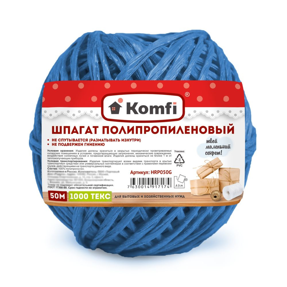Шпагат полипропиленовый 50м, 1000 Текс, синий Komfi HRP050B