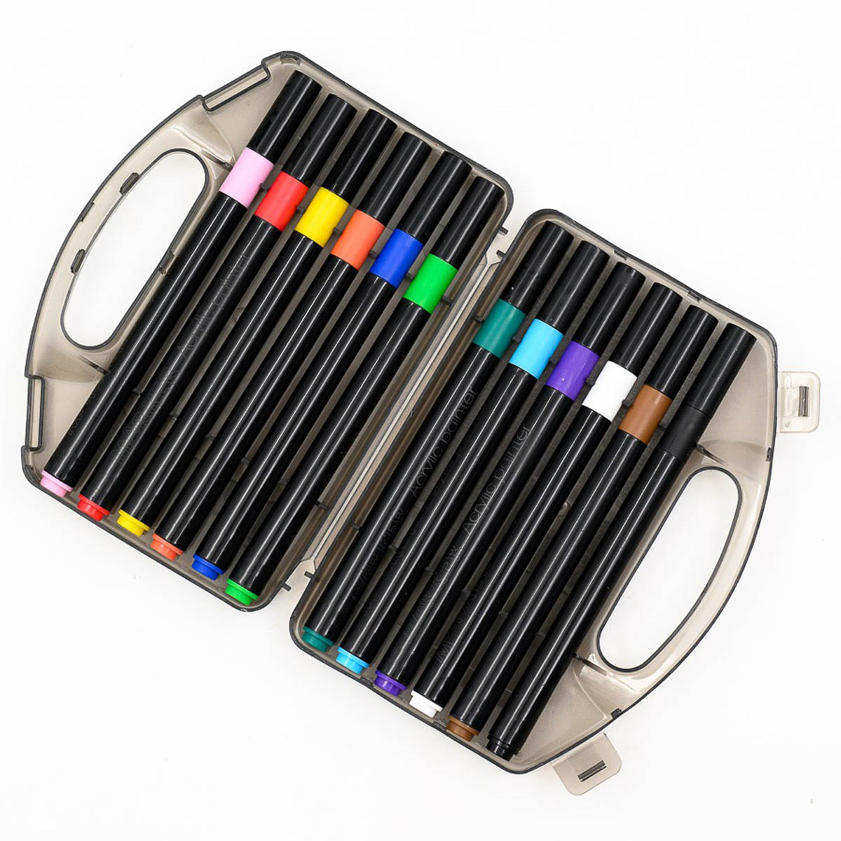 Акриловые маркеры на водной основе предназначены для рисования на холсте, бумаге, дереве, пластике, металле. Маркеры имеют высокую укрывистость с равномерным и насыщенным красочным слоем. Упакованы в пластиковую коробку с фиксаторами.