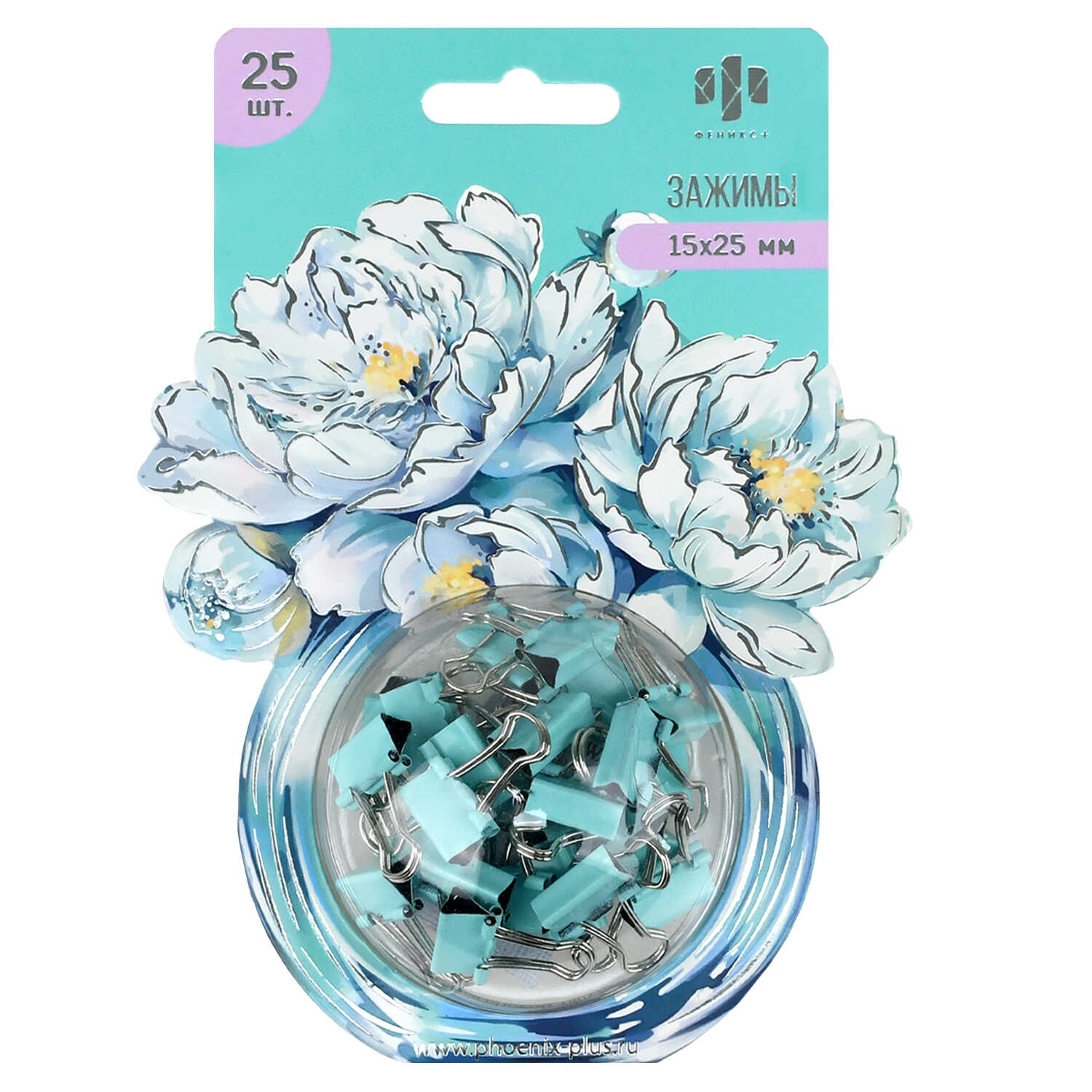 Зажимы канцелярские 25 шт 15х25ммПионы металлические мятные арт. 71499