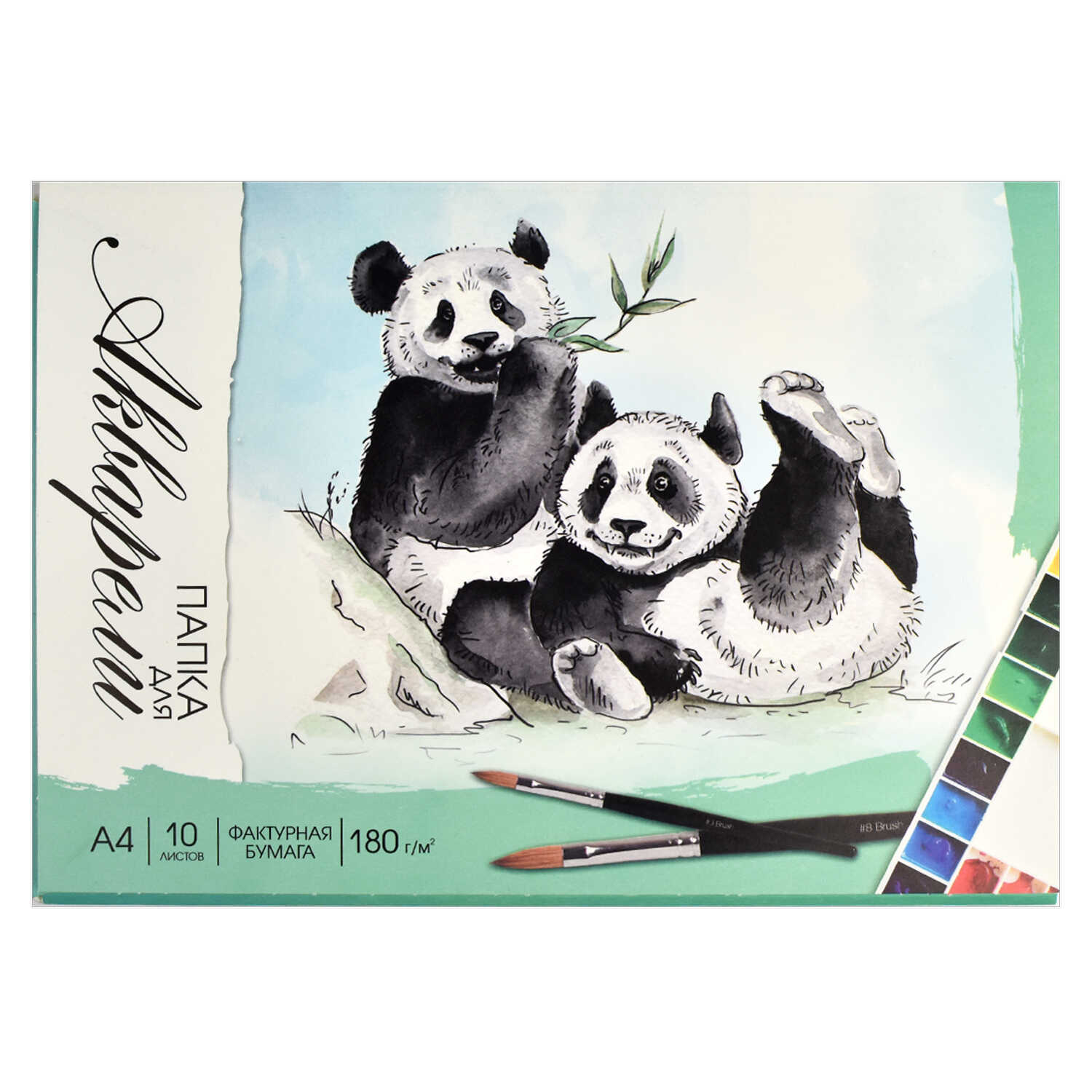 Папка для акварели А4 10л Панды папка с клапанами обложка — полноцветная печать арт. 67351