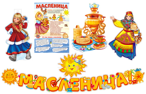 Комплект плакатов для оформления интерьера Масленица! (плакат А3, 4 фигур А3 и гирлянда) КБ-17078