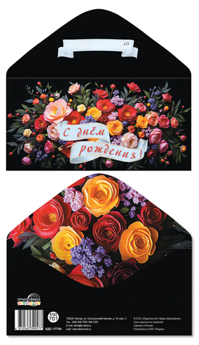 Конверт для денег на склейке КДС-17794 С Днем рождения! (цветы, женский)
