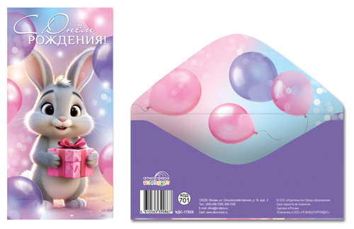 Конверт для денег на склейке КДС-17825 С Днем рождения! (унисекс, зайчик с подарком)