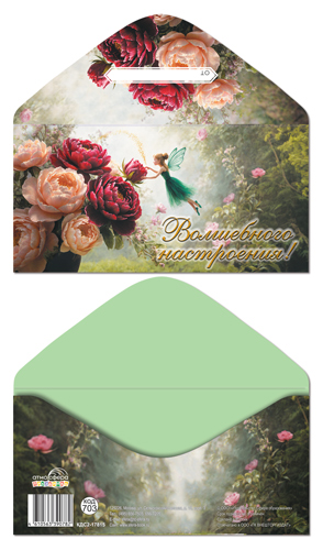 Конверт для денег на склейке КДС2-17815 Волшебного настроения! (цветы, фея, женский, фольга)