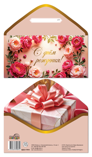 Конверт для денег на склейке КДС2-17818 С Днём рождения! (цветы, женский, фольга)