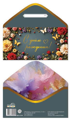Конверт для денег на склейке КДС2-17819 С Днём рождения! (цветы, женский, фольга)