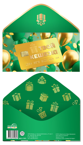 Конверт для денег на склейке КДС2-17821 Твой кешбэк! (унисекс, голд карт, золотая фольга)