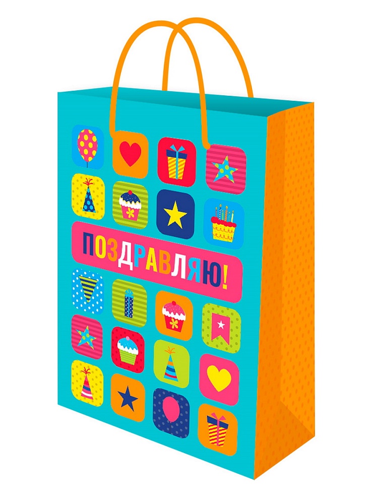 Пакет подарочный с мат.лам. 22х31х10см (ML) Торт со свечками, 190г (собс.разр.) ППК-2763