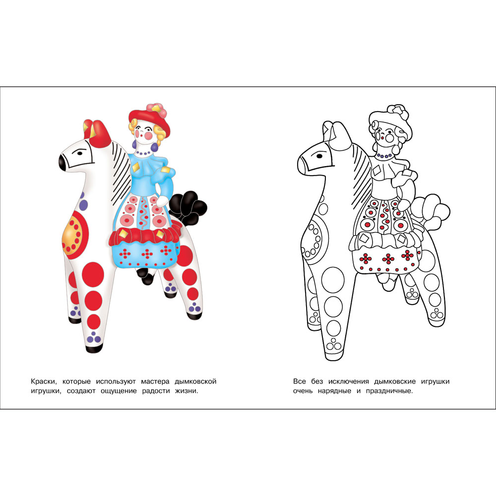 Эта серия раскрасок по образцу предназначена для занятий с детьми дома, в детском саду или в начальных классах школы. Цветные образцы и краткая информация помогут детям расширить свои знания об окружающем мире, в частности о народном промысле «Дымковская игрушка». Раскраска может использоваться как самостоятельно, так и в качестве дополнения к наглядно-дидактическим материалам в папке «Народные промыслы»