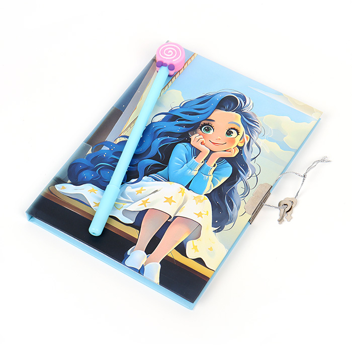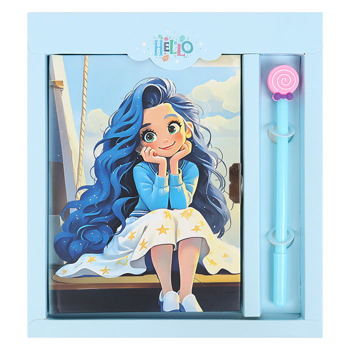 Блокнот А5 50л клет с замочком и ручкой Девочка с синими волосами Darvish 9005