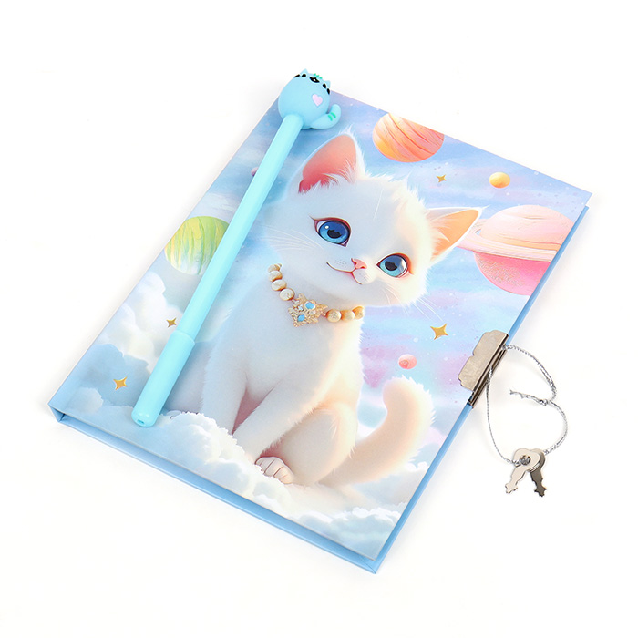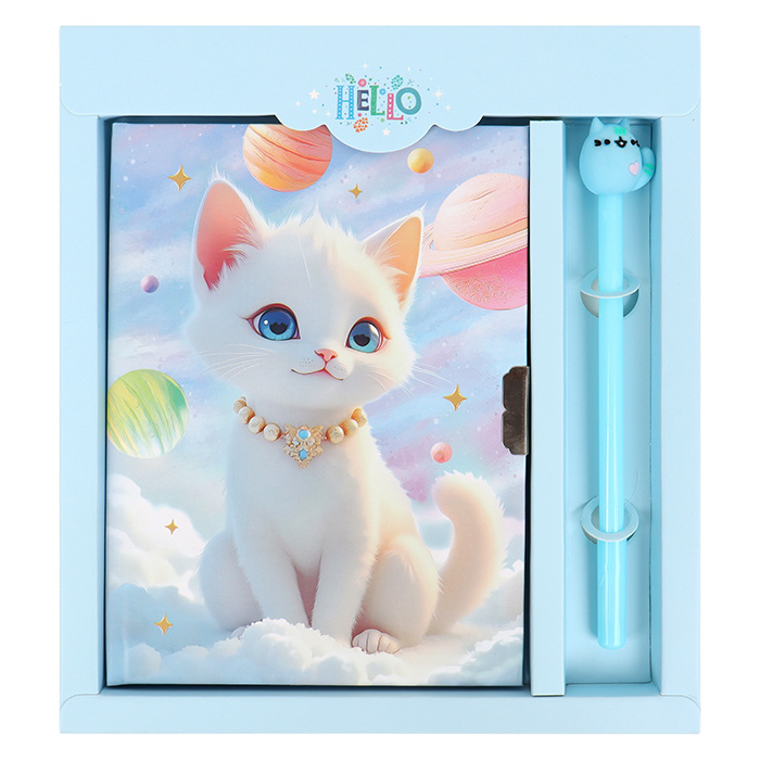 Блокнот А5 50л клет с замочком и ручкой Кошечка Darvish 8930