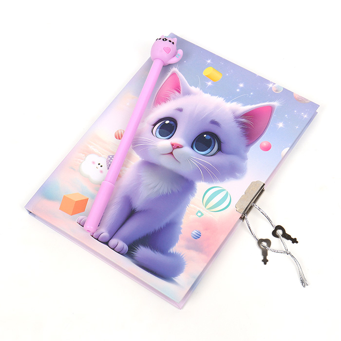 Блокнот А5 50л клет с замочком и ручкой Милый котенок Darvish 8916