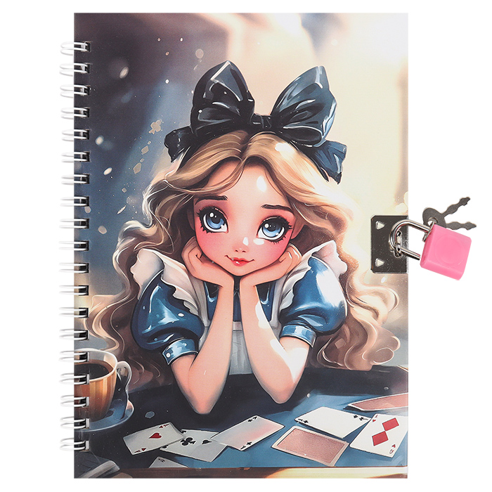 Блокнот А5 48л клет на спирали с замком Алиса в стране чудес Darvish 8794