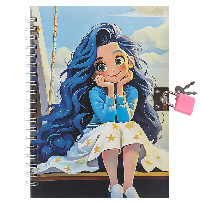 Блокнот А5 48л клет на спирали с замком Девочка с синими волосами Darvish 8800