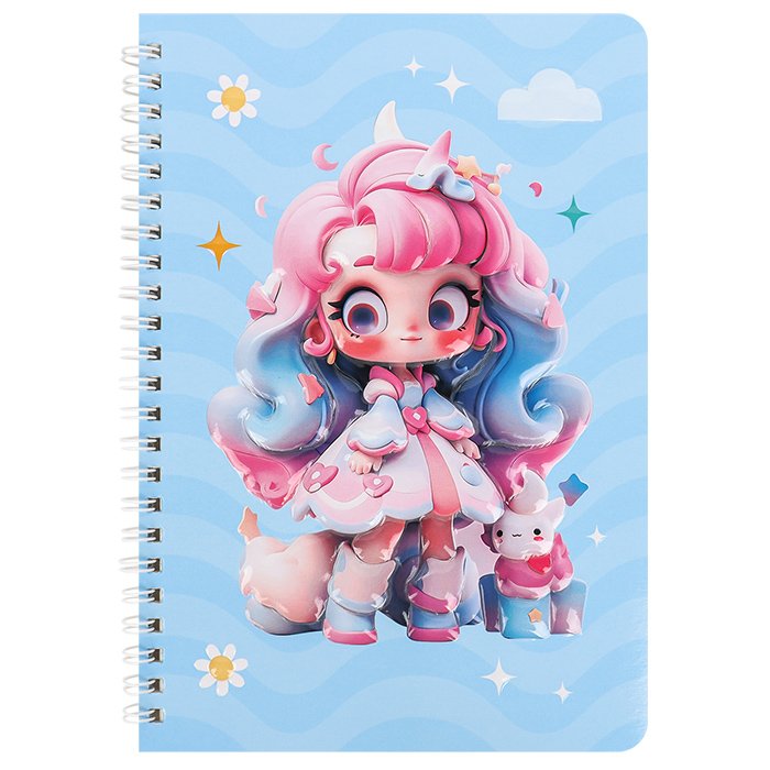 Блокнот А5 60л клет на спирали Девочка голубой 3D рисунок Darvish 8688