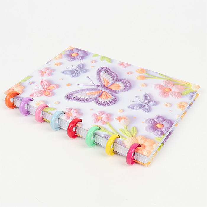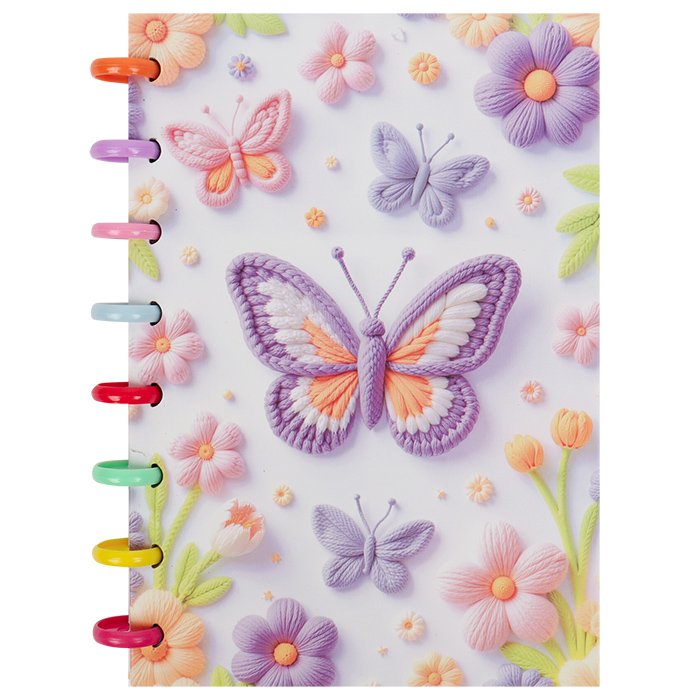 Блокнот А5 80л клет на пластиковых кольцах Бабочки сиреневый Darvish 8589