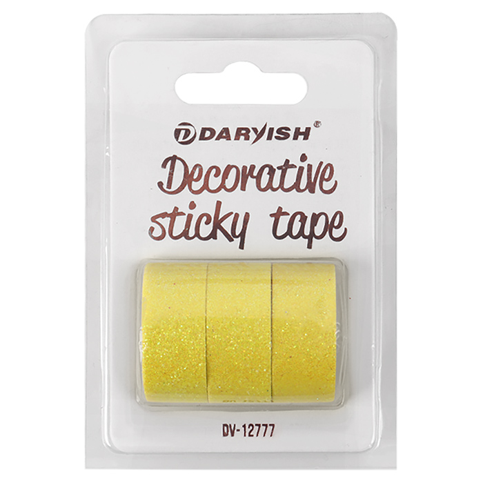 Материал д/творч Лента декоративная клейкая с блестками Набор 3тш 15мм*3м Желтая Darvish 6791
